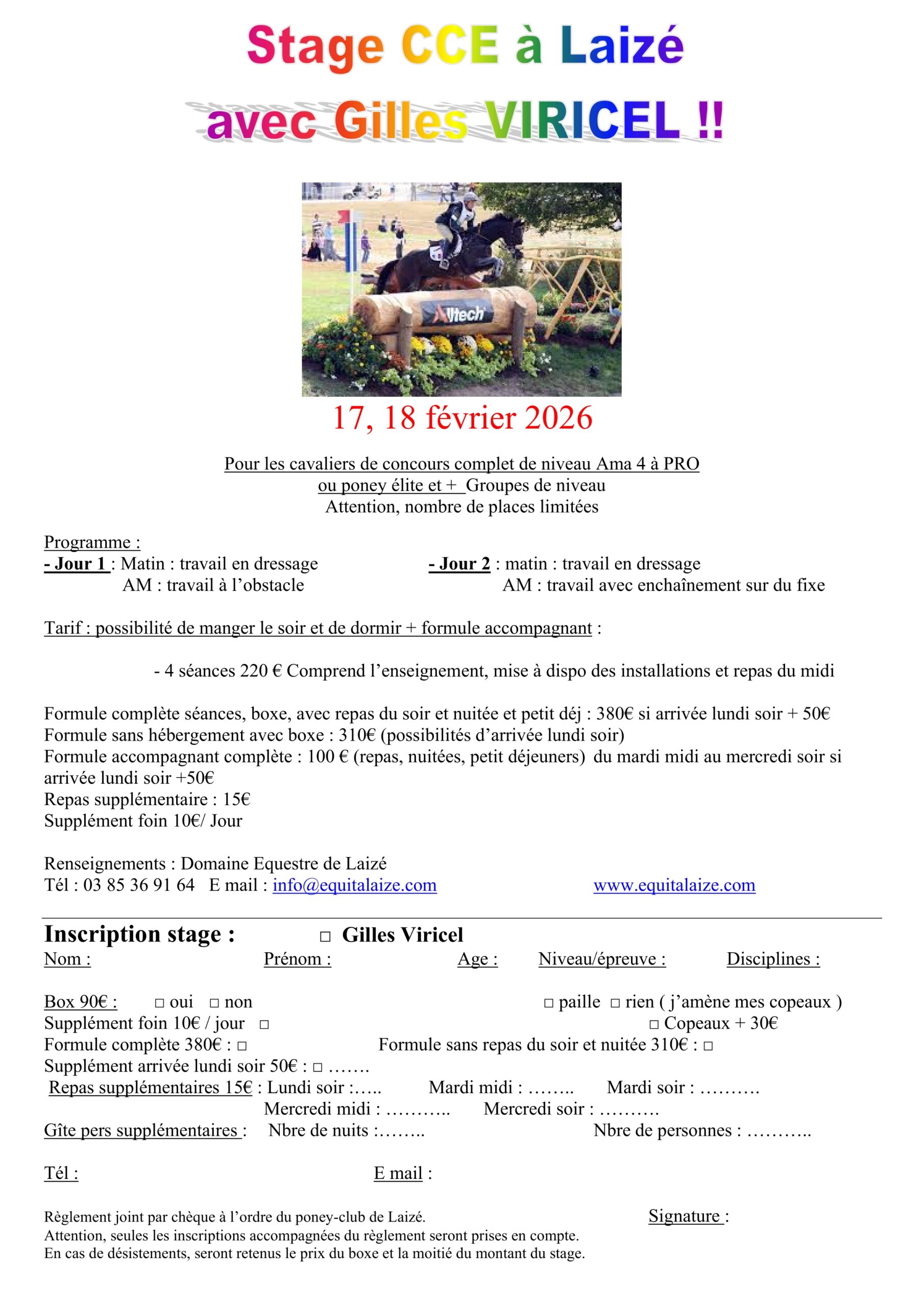 Vacances février et Pâques 2026 : réservez votre stage préféré ! p.1, p.2.